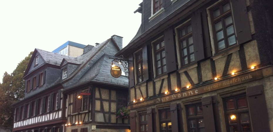 Once you walk past the market area located at the Uhr Turmchen (clock tower), you enter what is known as the “upper Berger Strasse” and it is up here that you will find some of the original half-timbered buildings from the 1600’s. Some of these are Applewine Gardens, like “Apfelwein Solzer” or other small restaurants. When you see “Dunkers” wine cellar, make sure to go inside as it is well worth a look as well as a good glass of wine in an original wine cellar. When you get to the very end of the Berger Strasse, you will find lots of little gardens that people rent. This is a pleasant area to stroll through.